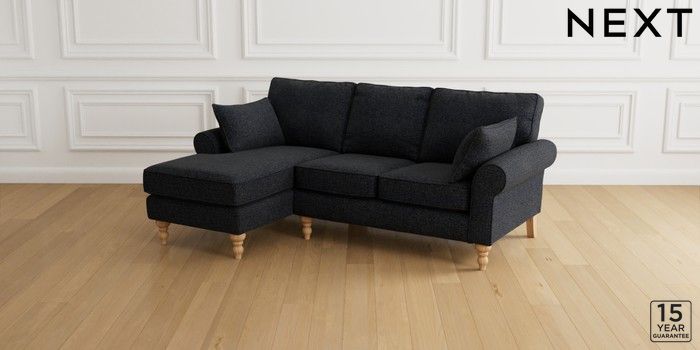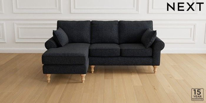 7.2.10 Mallory Small Sofa Chaise - Left Hand Tweedy Chenille Navy Blue High Turned - Light | Made Click here to use our website with more accessibility support, for example screen readers