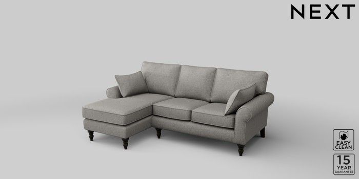 7.2.10 Mallory Small Sofa Chaise - Left Hand Woven Chenille Easy Clean Light Grey High Turned - Dark | Made Click here to use our website with more accessibility support, for example screen readers