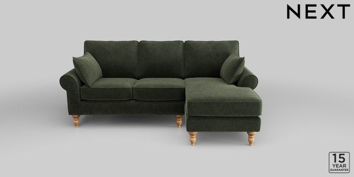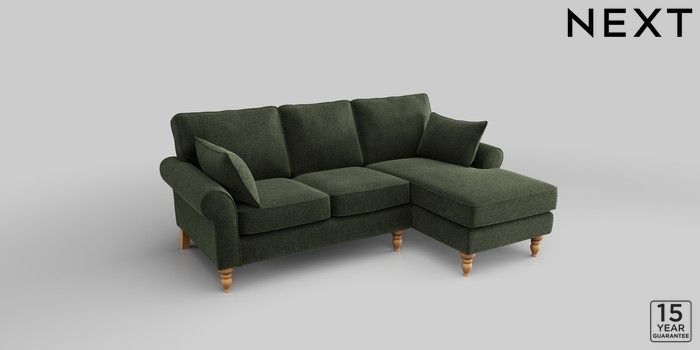 7.2.10 Mallory Small Sofa Chaise - Right Hand Boucle Chenille Dark Moss Green High Turned - Light | Made Click here to use our website with more accessibility support, for example screen readers