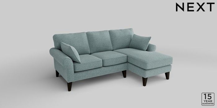 7.2.10 Mallory Small Sofa Chaise - Right Hand Chunky Chenille Light Teal Green High Tapered - Dark | Made Click here to use our website with more accessibility support, for example screen readers