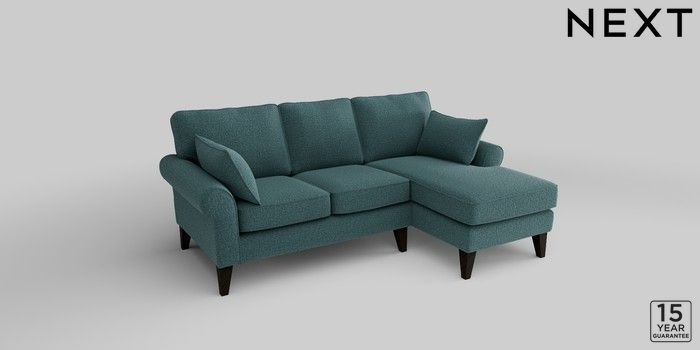 7.2.10 Mallory Small Sofa Chaise - Right Hand Chunky Chenille Mid Teal Green High Tapered - Dark | Made Click here to use our website with more accessibility support, for example screen readers