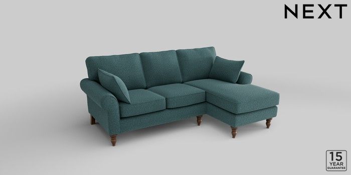 7.2.10 Mallory Small Sofa Chaise - Right Hand Chunky Chenille Mid Teal Green High Turned - Mid | Made Click here to use our website with more accessibility support, for example screen readers