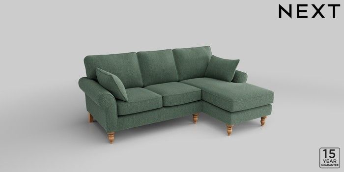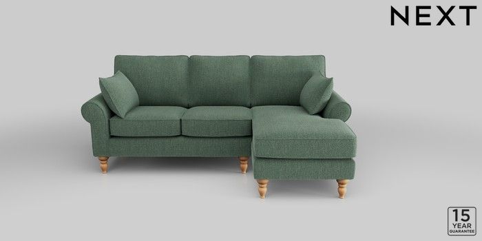 7.2.10 Mallory Small Sofa Chaise - Right Hand Chunky Texture Mid Forest Green High Turned - Light | Made Click here to use our website with more accessibility support, for example screen readers