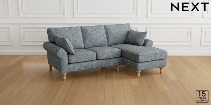 7.2.10 Mallory Small Sofa Chaise - Right Hand Chunky Weave Mid Blue High Turned - Light | Made Click here to use our website with more accessibility support, for example screen readers