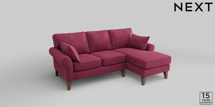 7.2.10 Mallory Small Sofa Chaise - Right Hand Cotswold Chenille Dark Raspberry Pink High Tapered - Mid | Made Click here to use our website with more accessibility support, for example screen readers