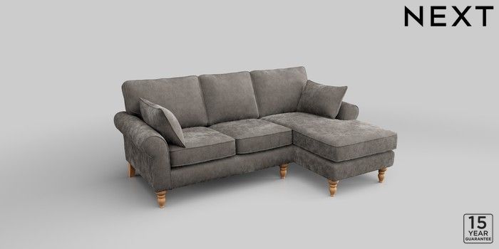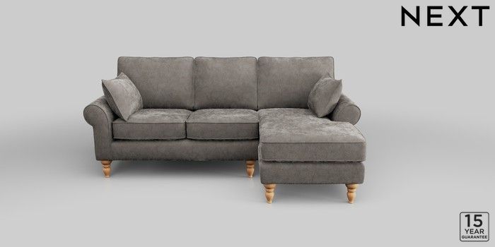 7.2.10 Mallory Small Sofa Chaise - Right Hand Distressed Velour French Grey High Turned - Light | Made Click here to use our website with more accessibility support, for example screen readers