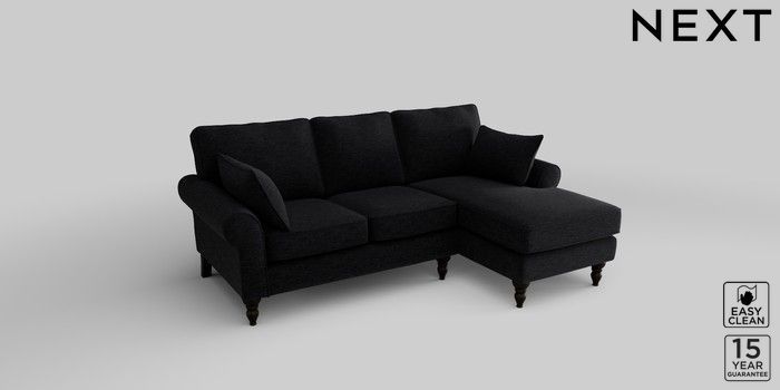 7.2.10 Mallory Small Sofa Chaise - Right Hand Fine Chenille Easy Clean Black High Turned - Dark | Made Click here to use our website with more accessibility support, for example screen readers