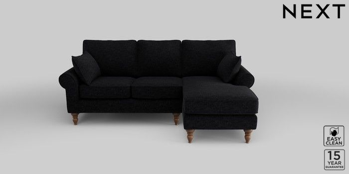 7.2.10 Mallory Small Sofa Chaise - Right Hand Fine Chenille Easy Clean Black High Turned - Mid | Made Click here to use our website with more accessibility support, for example screen readers