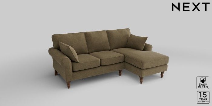 7.2.10 Mallory Small Sofa Chaise - Right Hand Fine Chenille Easy Clean Dark Moss Green High Turned - Mid | Made Click here to use our website with more accessibility support, for example screen readers