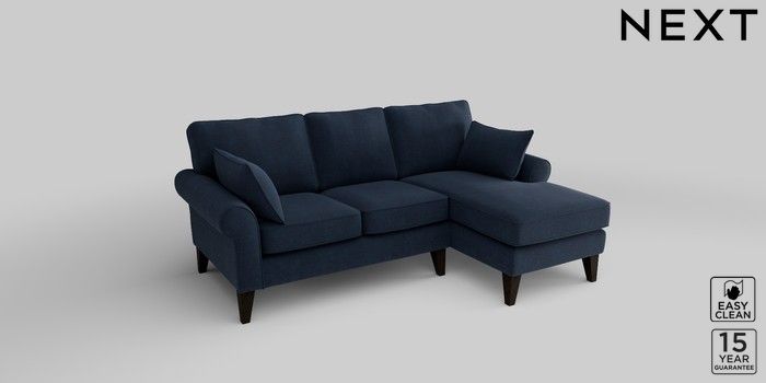 7.2.10 Mallory Small Sofa Chaise - Right Hand Fine Chenille Easy Clean Dark Navy Blue High Tapered - Dark | Made Click here to use our website with more accessibility support, for example screen readers