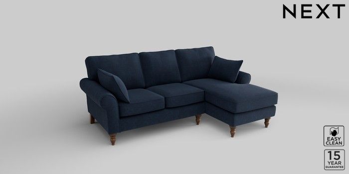 7.2.10 Mallory Small Sofa Chaise - Right Hand Fine Chenille Easy Clean Dark Navy Blue High Turned - Mid | Made Click here to use our website with more accessibility support, for example screen readers
