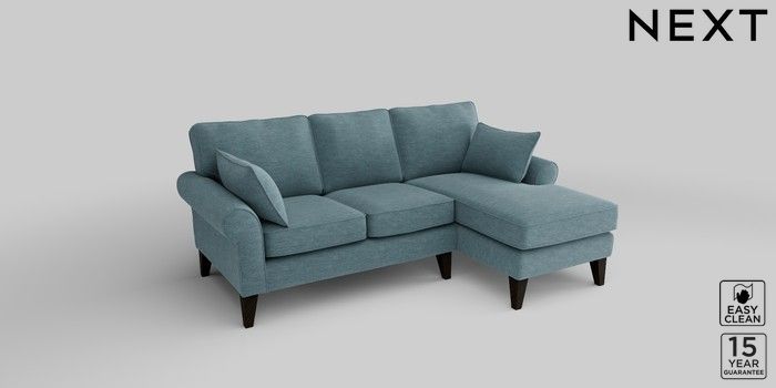 7.2.10 Mallory Small Sofa Chaise - Right Hand Fine Chenille Easy Clean Mid Blue High Tapered - Dark | Made Click here to use our website with more accessibility support, for example screen readers