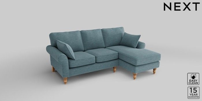 7.2.10 Mallory Small Sofa Chaise - Right Hand Fine Chenille Easy Clean Mid Blue High Turned - Light | Made Click here to use our website with more accessibility support, for example screen readers