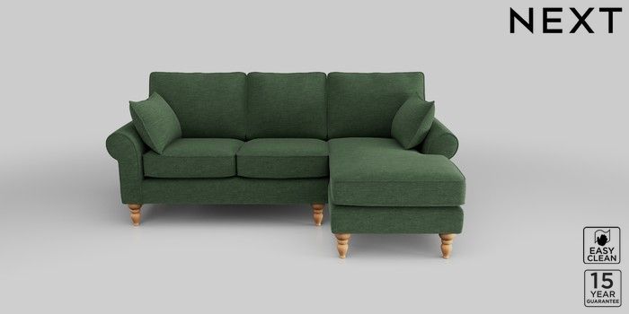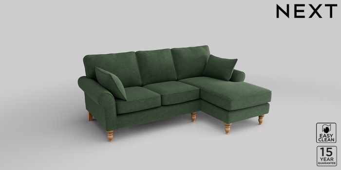 7.2.10 Mallory Small Sofa Chaise - Right Hand Fine Chenille Easy Clean Mid Khaki Green High Turned - Light | Made Click here to use our website with more accessibility support, for example screen readers