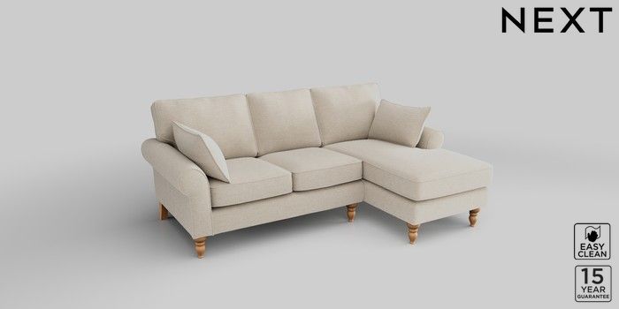 7.2.10 Mallory Small Sofa Chaise - Right Hand Fine Chenille Easy Clean Oyster High Turned - Light | Made Click here to use our website with more accessibility support, for example screen readers