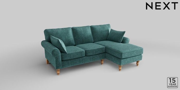 7.2.10 Mallory Small Sofa Chaise - Right Hand Plush Chenille Dark Teal Green High Turned - Light | Made Click here to use our website with more accessibility support, for example screen readers