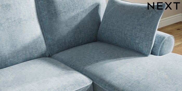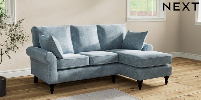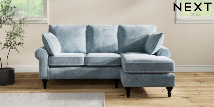 7.2.10 Mallory Small Sofa Chaise - Right Hand Plush Chenille Light Blue High Turned - Dark | Made Click here to use our website with more accessibility support, for example screen readers