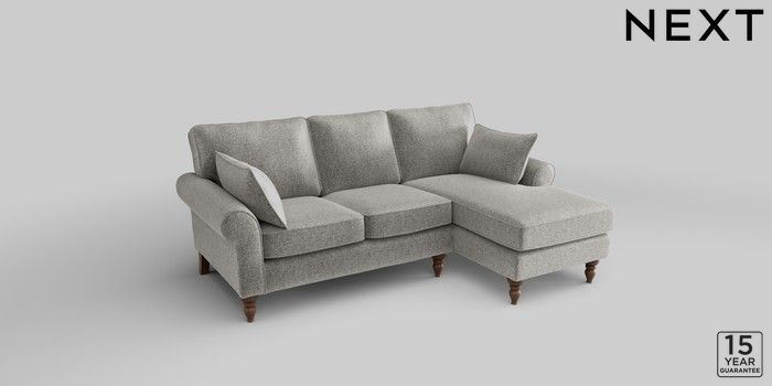 7.2.10 Mallory Small Sofa Chaise - Right Hand Plush Chenille Light Grey High Turned - Mid | Made Click here to use our website with more accessibility support, for example screen readers