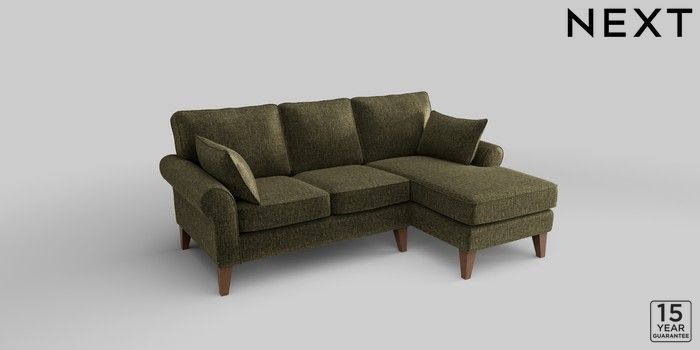 7.2.10 Mallory Small Sofa Chaise - Right Hand Plush Chenille Moss Green High Tapered - Mid | Made Click here to use our website with more accessibility support, for example screen readers