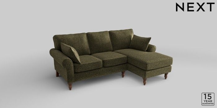 7.2.10 Mallory Small Sofa Chaise - Right Hand Plush Chenille Moss Green High Turned - Mid | Made Click here to use our website with more accessibility support, for example screen readers