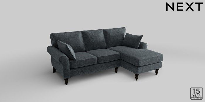 7.2.10 Mallory Small Sofa Chaise - Right Hand Plush Chenille Slate Blue High Turned - Dark | Made Click here to use our website with more accessibility support, for example screen readers
