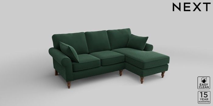 7.2.10 Mallory Small Sofa Chaise - Right Hand Plush Velvet Easy Clean Bottle Green High Turned - Mid | Made Click here to use our website with more accessibility support, for example screen readers