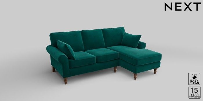 7.2.10 Mallory Small Sofa Chaise - Right Hand Plush Velvet Easy Clean Juniper Green High Turned - Mid | Made Click here to use our website with more accessibility support, for example screen readers
