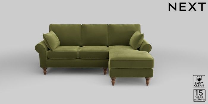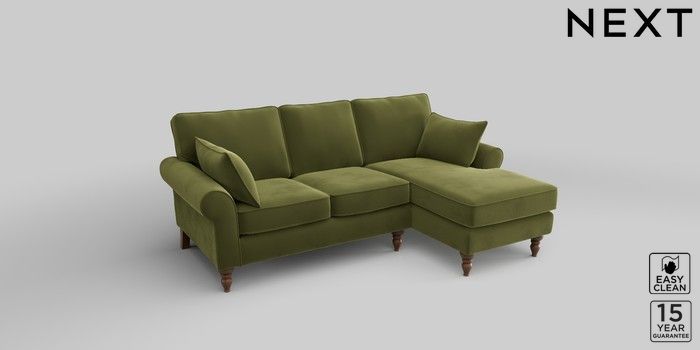 7.2.10 Mallory Small Sofa Chaise - Right Hand Plush Velvet Easy Clean Mid Olive Green High Turned - Mid | Made Click here to use our website with more accessibility support, for example screen readers