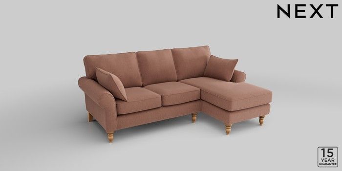 7.2.10 Mallory Small Sofa Chaise - Right Hand Relaxed Linen Look Light Rust Brown High Turned - Light | Made Click here to use our website with more accessibility support, for example screen readers