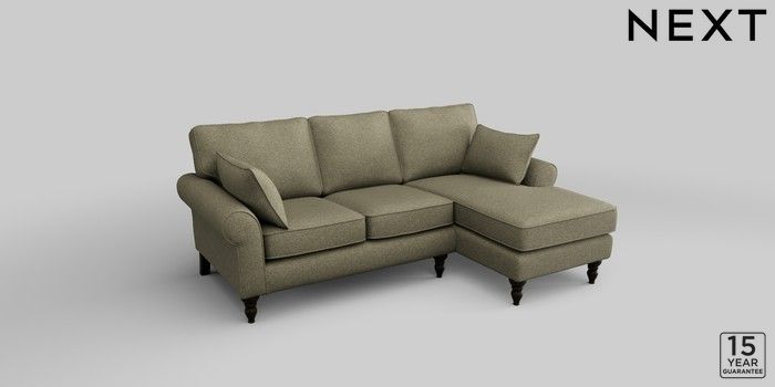 7.2.10 Mallory Small Sofa Chaise - Right Hand Tweedy Chenille Mid Moss Green High Turned - Dark | Made Click here to use our website with more accessibility support, for example screen readers