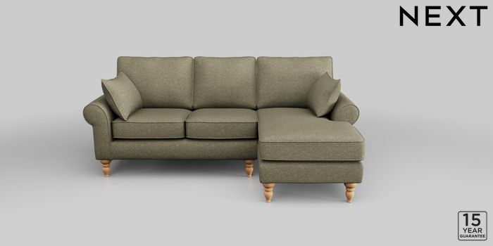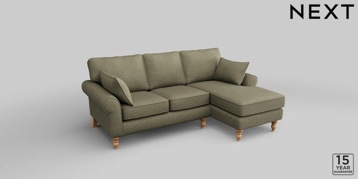 7.2.10 Mallory Small Sofa Chaise - Right Hand Tweedy Chenille Mid Moss Green High Turned - Light | Made Click here to use our website with more accessibility support, for example screen readers