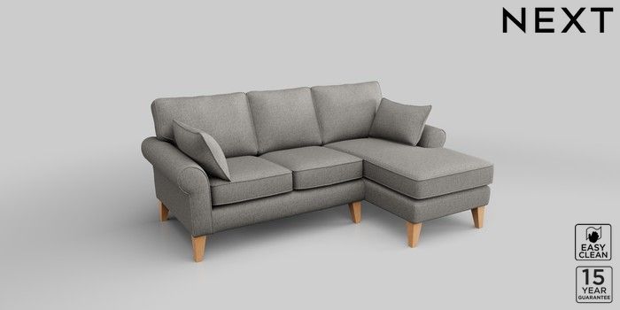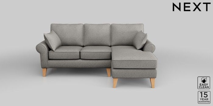 7.2.10 Mallory Small Sofa Chaise - Right Hand Woven Chenille Easy Clean Light Grey High Tapered - Light | Made Click here to use our website with more accessibility support, for example screen readers