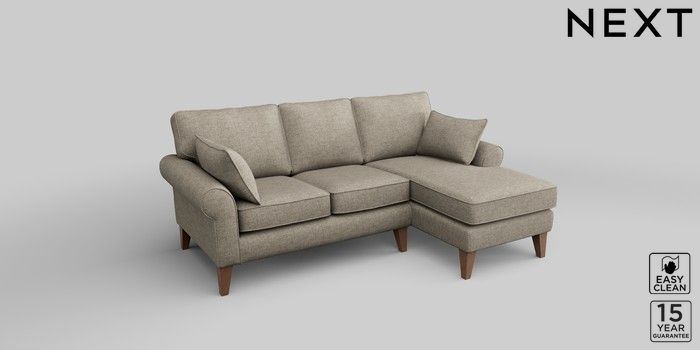 7.2.10 Mallory Small Sofa Chaise - Right Hand Woven Chenille Easy Clean Mid Natural High Tapered - Mid | Made Click here to use our website with more accessibility support, for example screen readers