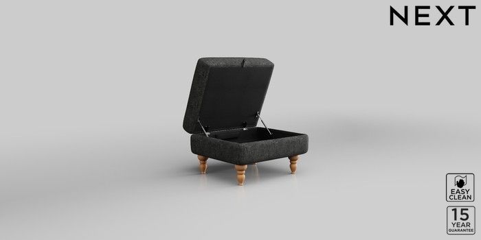 7.2.10 Mallory Storage Footstool Boucle Weave Easy Clean Charcoal Grey High Turned - Light | Made Click here to use our website with more accessibility support, for example screen readers