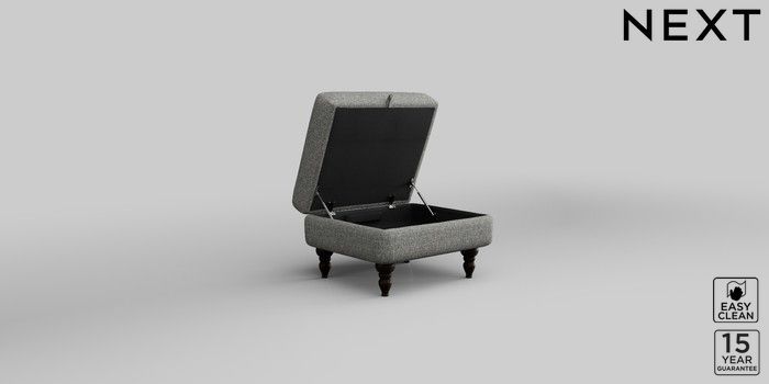 7.2.10 Mallory Storage Footstool Chunky Boucle Easy Clean Mid Grey High Turned - Dark | Made Click here to use our website with more accessibility support, for example screen readers