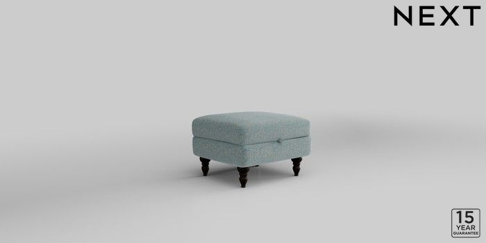 7.2.10 Mallory Storage Footstool Chunky Marl Mid Blue High Turned - Dark | Made Click here to use our website with more accessibility support, for example screen readers