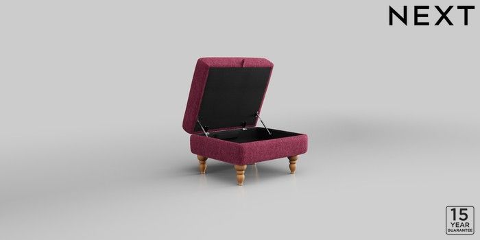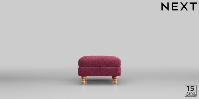 7.2.10 Mallory Storage Footstool Cotswold Chenille Dark Raspberry Pink High Turned - Light | Made Click here to use our website with more accessibility support, for example screen readers