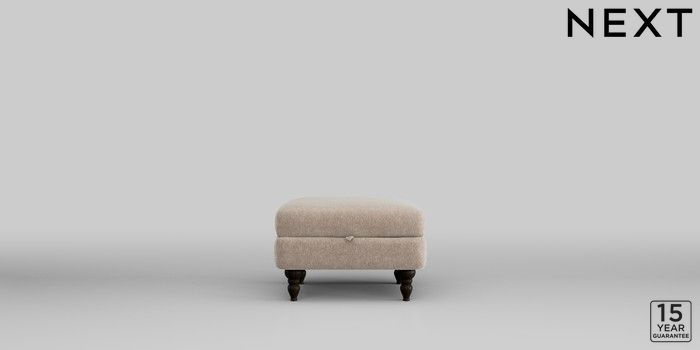 7.2.10 Mallory Storage Footstool Cotswold Chenille Light Natural High Turned - Dark | Made Click here to use our website with more accessibility support, for example screen readers