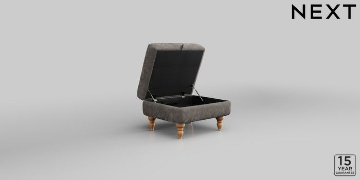 7.2.10 Mallory Storage Footstool Distressed Velour French Grey High Turned - Light | Made Click here to use our website with more accessibility support, for example screen readers