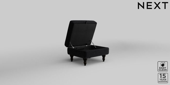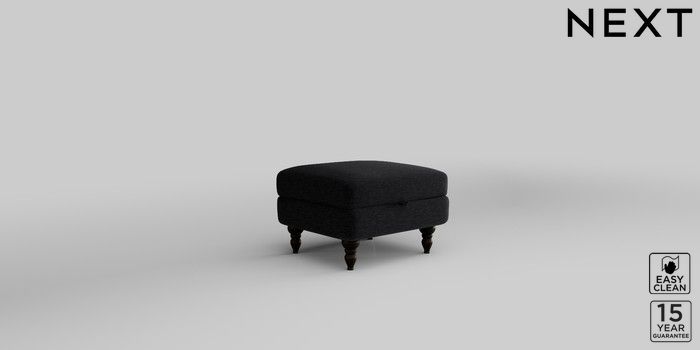 7.2.10 Mallory Storage Footstool Fine Chenille Easy Clean Black High Turned - Dark | Made Click here to use our website with more accessibility support, for example screen readers