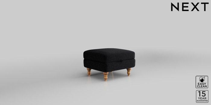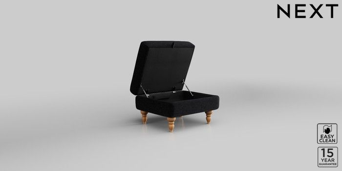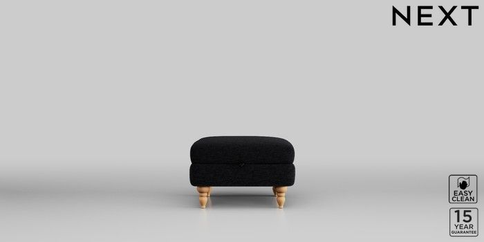 7.2.10 Mallory Storage Footstool Fine Chenille Easy Clean Black High Turned - Light | Made Click here to use our website with more accessibility support, for example screen readers