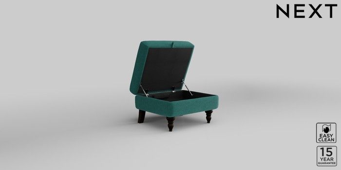 7.2.10 Mallory Storage Footstool Fine Chenille Easy Clean Dark Juniper Green High Turned - Dark | Made Click here to use our website with more accessibility support, for example screen readers