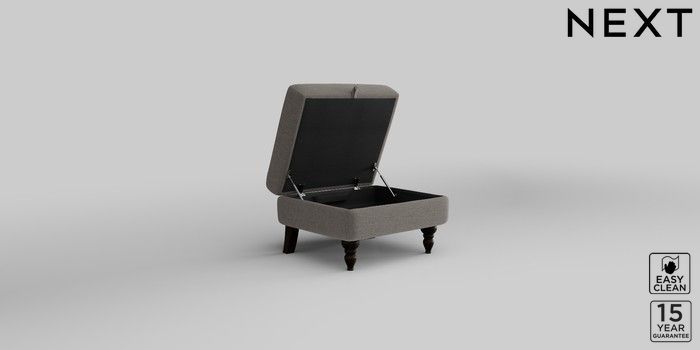 7.2.10 Mallory Storage Footstool Fine Chenille Easy Clean Dark Smoke Grey High Turned - Dark | Made Click here to use our website with more accessibility support, for example screen readers