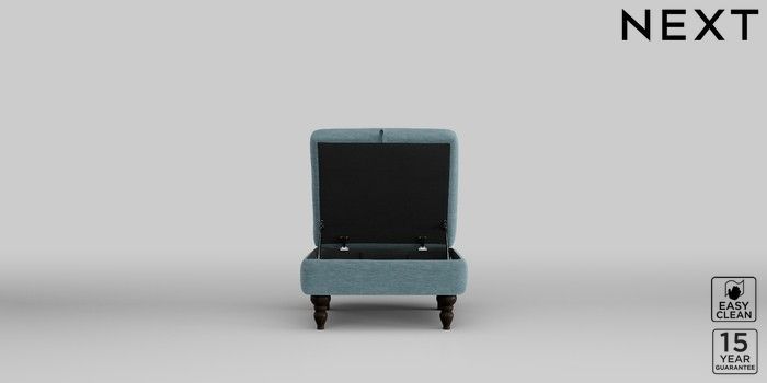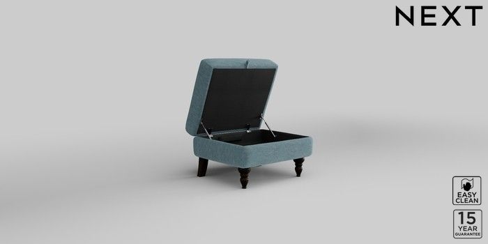7.2.10 Mallory Storage Footstool Fine Chenille Easy Clean Mid Blue High Turned - Dark | Made Click here to use our website with more accessibility support, for example screen readers