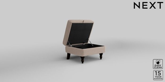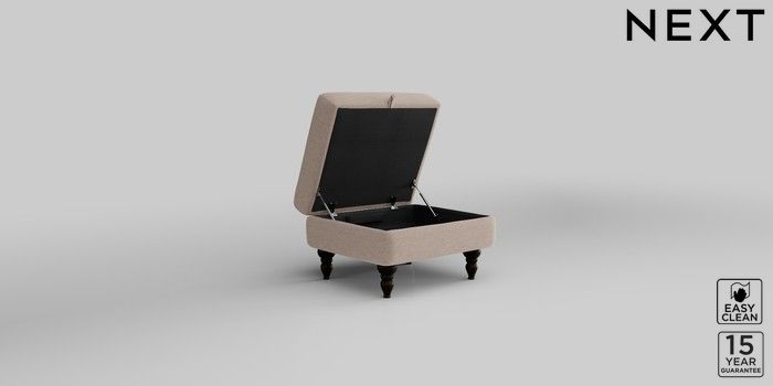 7.2.10 Mallory Storage Footstool Fine Chenille Easy Clean Mid Taupe Brown High Turned - Dark | Made Click here to use our website with more accessibility support, for example screen readers