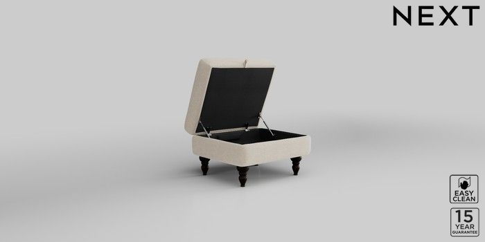 7.2.10 Mallory Storage Footstool Fine Chenille Easy Clean Oyster High Turned - Dark | Made Click here to use our website with more accessibility support, for example screen readers