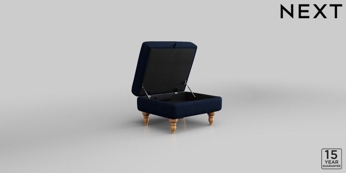 7.2.10 Mallory Storage Footstool Luxe Chenille Navy Blue High Turned - Light | Made Click here to use our website with more accessibility support, for example screen readers
