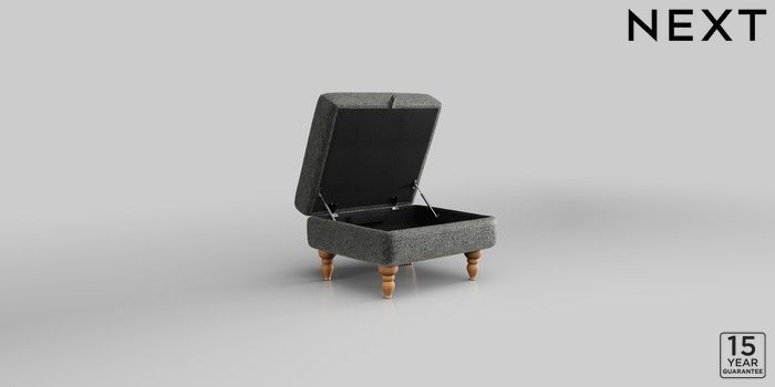 7.2.10 Mallory Storage Footstool Plush Chenille Dark Grey High Turned - Light | Made Click here to use our website with more accessibility support, for example screen readers
