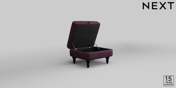 7.2.10 Mallory Storage Footstool Plush Chenille Dark Plum Purple High Turned - Dark | Made Click here to use our website with more accessibility support, for example screen readers