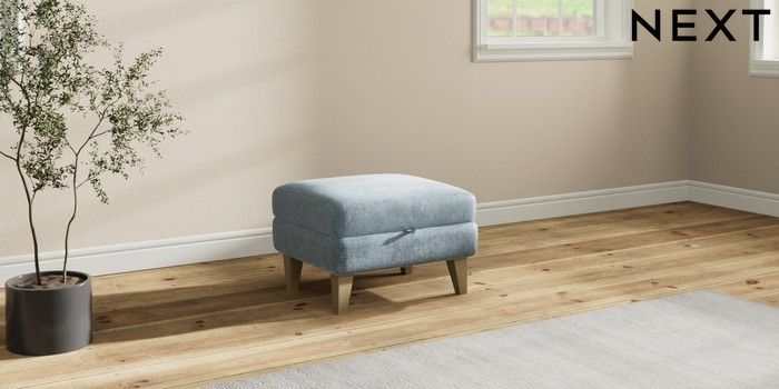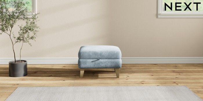 7.2.10 Mallory Storage Footstool Plush Chenille Light Blue High Tapered - Light | Made Click here to use our website with more accessibility support, for example screen readers